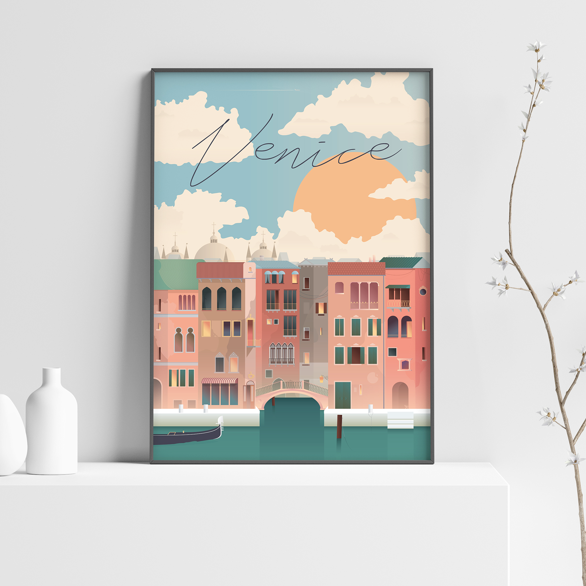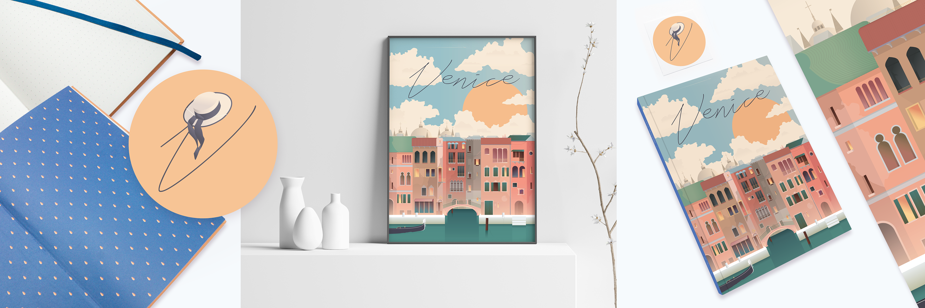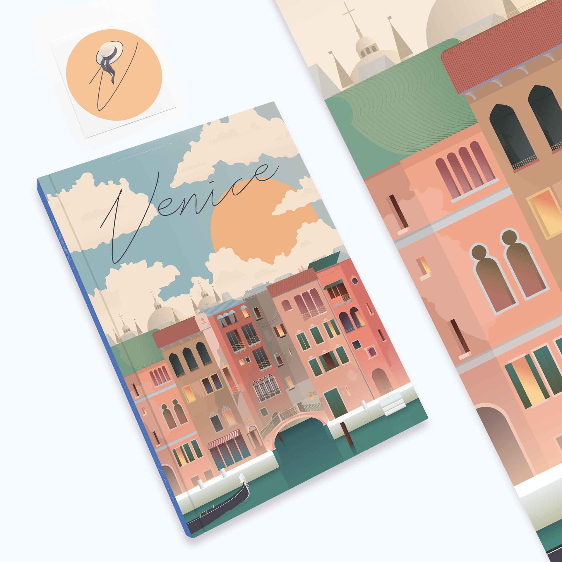 Venice illustration for notebook, sticker and poster.